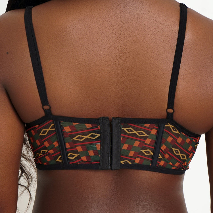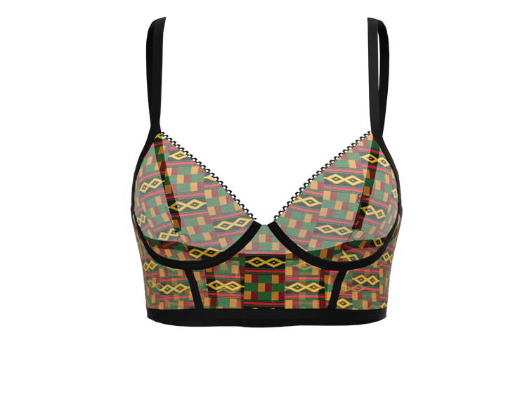 This underwired bra from Melaninated works well under low-cut necklines, with its classic plunge silhouette. It's made from lace, reliable super stretchy polyester and spandex with pretty scalloped edges and has adjustable straps for a supportive fit. Complete the set with our Shanty thong